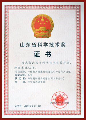 Ensign Industry was awarded” ShandongScience and Technology Progress Prize” in 2016.