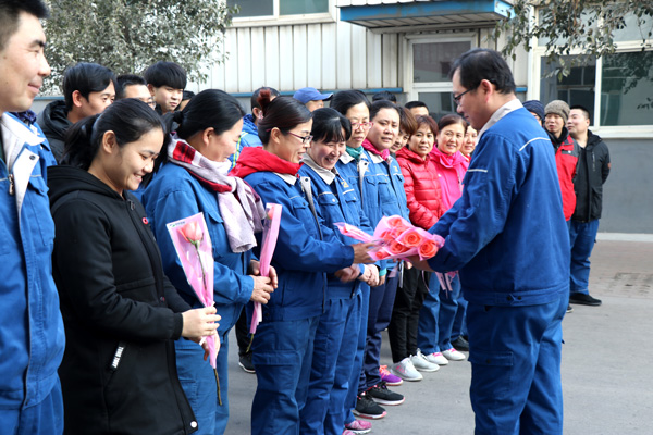 In order to celebrate International Women's Day andencourage their passion for work, the company organized an activity to presentroses to each female employee.