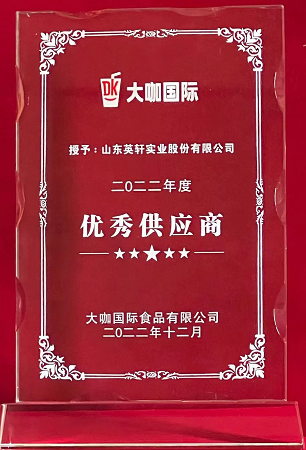 Since our cooperation with D.CO INTERNATIONAL FOODin 2014, we have always carried forward service concept of "Serving withHeart, Exceeding Expectations". By virtue of excellent product quality,high standard transportation prevention and control, and excellent after-salesservice, we have implemented and standardized the requirements of customers oneby one, effectively met the needs of customers and won high praise fromcustomers. D.CO INTERNATIONAL FOOD hereby awards the highest accolade of"5-Star Excellent Supplier" to ENSIGN INDUSTRY.