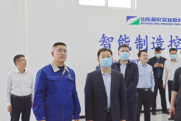Minister Du and his delegation communicated with Mr. Li on the productionand development history of the company at the site of Intelligent Manufacturing Control Center. They highly praised the development of the company and as a leading enterprise in the industry, Ensign Industry was encouraged to continueto give full play to its characteristic advantages and lead by innovation, andcontinuously promote the rapid development of local economy.