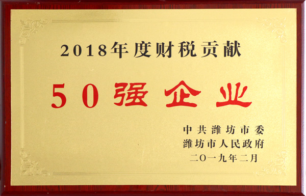 近日,中共潍坊市委、潍坊市人民政府召开了“工作落实年”动员部署暨“双招双引”对外开放推进会议。会上发布了《关于表彰2018年度先进单位、先进个人的决定》,我公司被授予“2018年度财税贡献50强企业”和“2018年度高质量发展领军企业”两项殊荣。