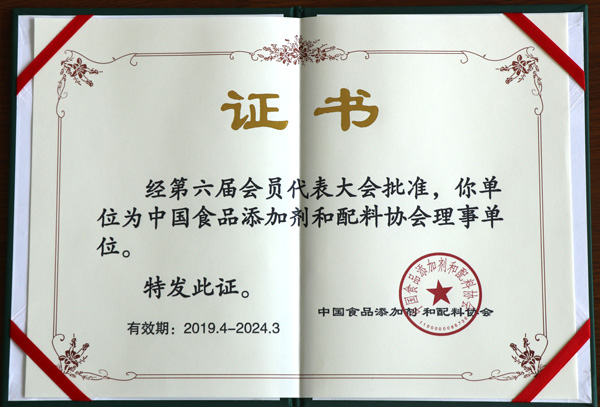 我公司荣获“中国食品添加剂和配料协会理事单位”的荣誉称号