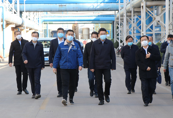 2月18日下午,潍坊市委副书记、市长田庆盈一行到公司调研指导疫情防控及生产经营工作,县委书记刘裕斌、县长张建伟、副县长张正民,公司总经理李俭、后勤总监张传惠陪同。