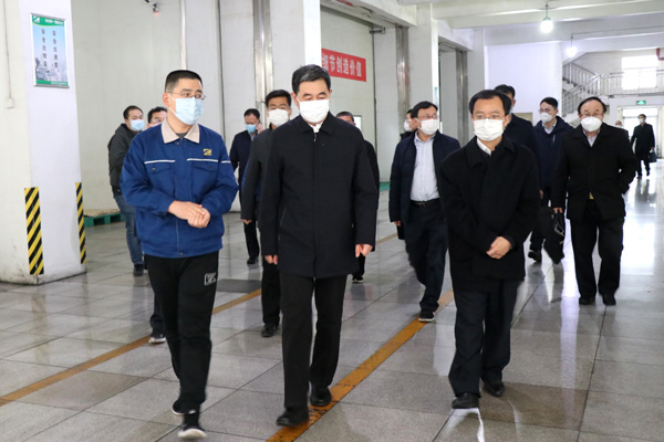 3月9日下午,潍坊市委常委、统战部部长王兆辉一行来公司调研指导疫情防控及生产经营工作,县委书记刘裕斌、副县长桑海强,公司总经理李俭、后勤总监张传惠陪同。