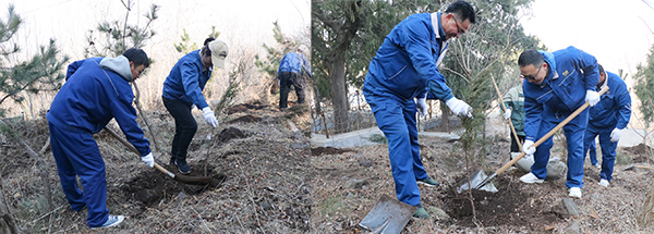 今年的植树现场依旧一片热火朝天、生机盎然的景象,开荒、刨坑、栽种、浇水,井然有序,配合默契。今年,英轩援建林又添新丁,英轩人用勤劳的双手为绿色生态再添新绿。