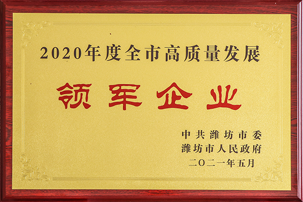 On April 30, 2021,Weifang Municipal Committee and Weifang Municipal Government issueda document to commend the advanced companies in the comprehensive assessment ofthe city in 2020.Ensign Industry won the titleof “leading enterprise of high quality development in 2020 of Weifang”,among which 30 enterprises in the city have won this honor.