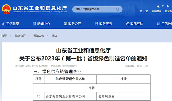 On July 28, 2023, the Shandong Provincial Department of Industry and Information Technology released the 2023 provincial green manufacturing list, and SHANDONG ENSIGN INDUSTRY CO., LTD. was successfully selected as a "green supply chain management enterprise". This is another honor for the company in green development, following the national green factory and Shandong green factory in 2022.